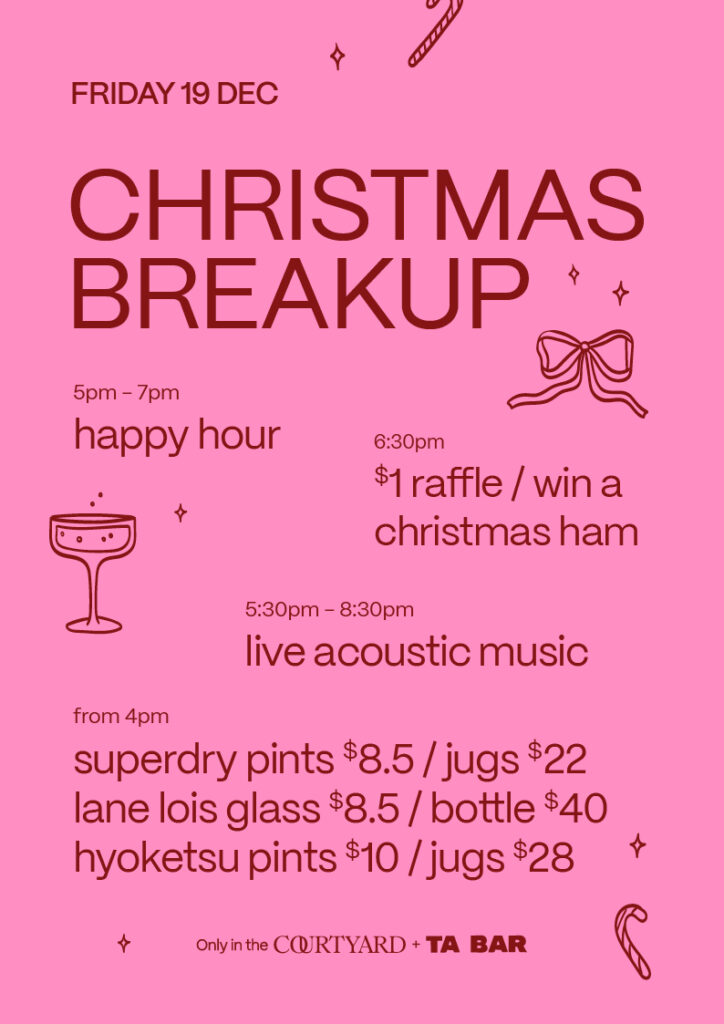 Kick off the holiday season with our big Christmas Breakup in the Courtyard + TA Bar!