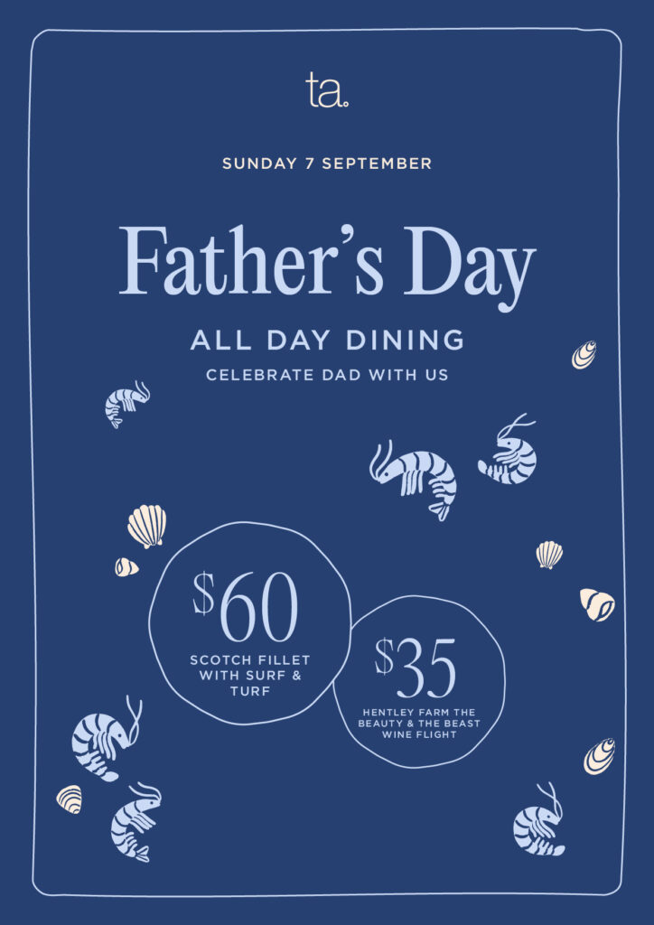 Indulge in a Scotch Fillet Surf & Turf for $60 or a Hentley Farm ‘The Beauty & The Beast’ wine flight for $35 — the perfect way to treat him.