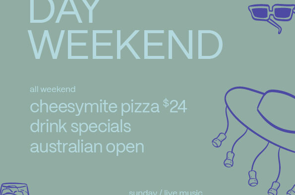 Celebrate Australia Day Weekend in the TA Courtyard! January 24–26: enjoy $24 Cheesymite Pizza, drink specials, and the Australian Open live on the big screen 🇦🇺🎾