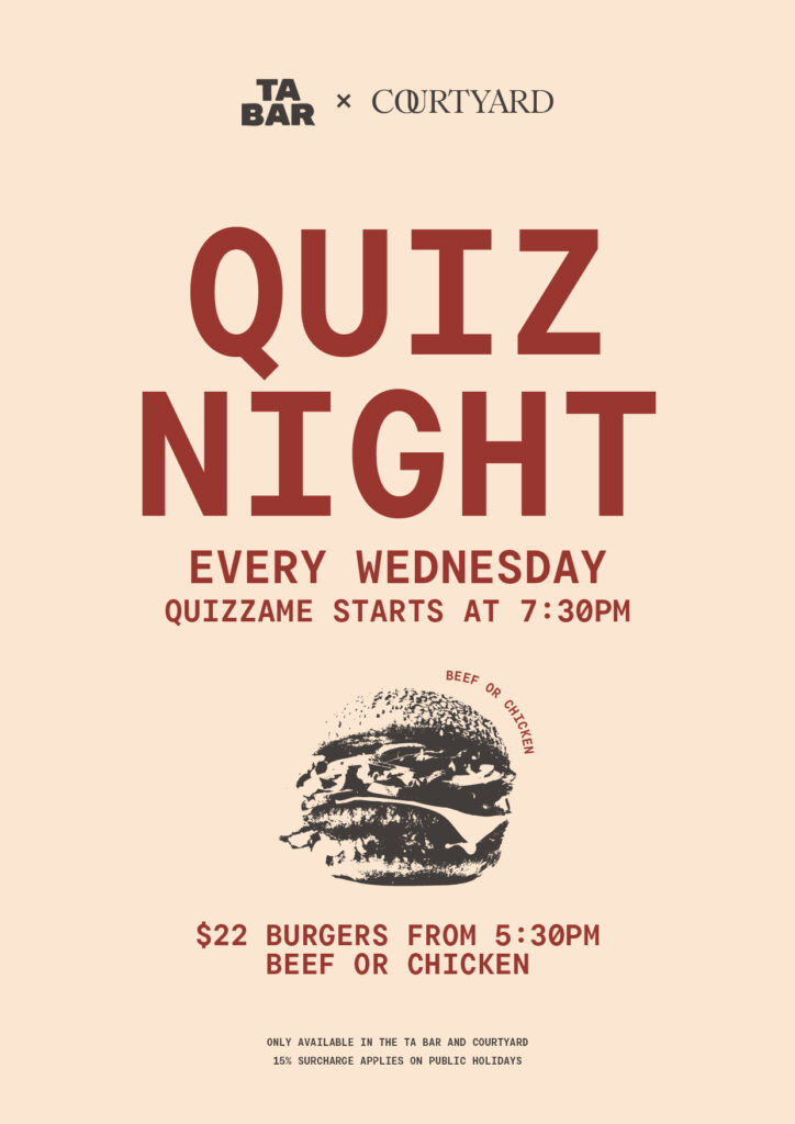 Get some mates together and test your general knowledge every Wednesday night with QuizzaMe from 7:30pm.