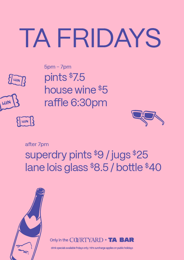 The TA Bar & Courtyard is the perfect place to catch the game, have a punt, and sink your teeth into a hearty pub feed. Plus we have some great weekly offers.