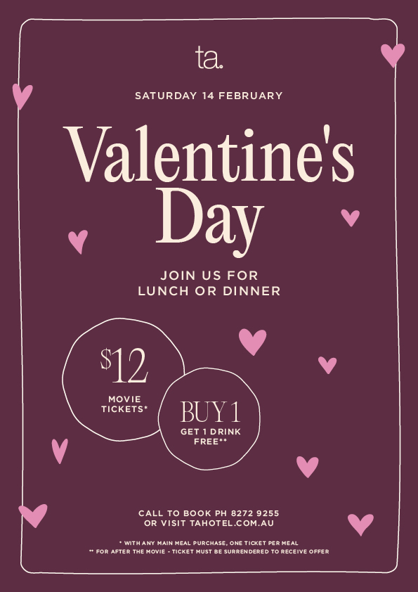 Celebrate Valentine’s Day with us over lunch or dinner, featuring specials made for an easy date. Enjoy $12 movie tickets* and a Buy 1, Get 1 drink offer**, perfect for pairing dinner with a film.