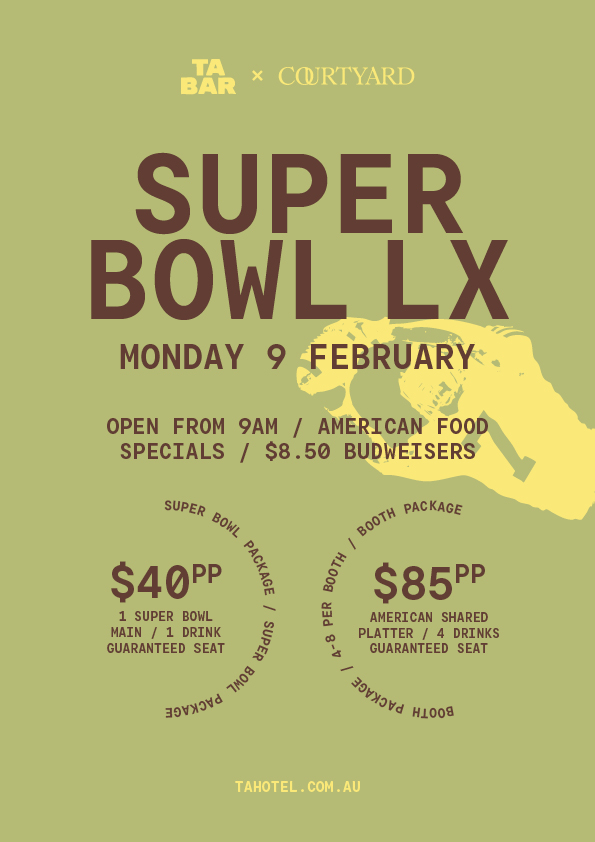 Catch all the game-day action and halftime entertainment LIVE on the biggest screen in Mitcham. Enjoy American-themed food specials, drink deals (yes, that includes Budweisers!). 🏈
