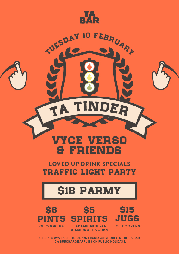 Join us for TA Tinder (TA Tuesdays) on Valentine’s week in the TA Bar and grab a glow stick on arrival based on your relationship status!