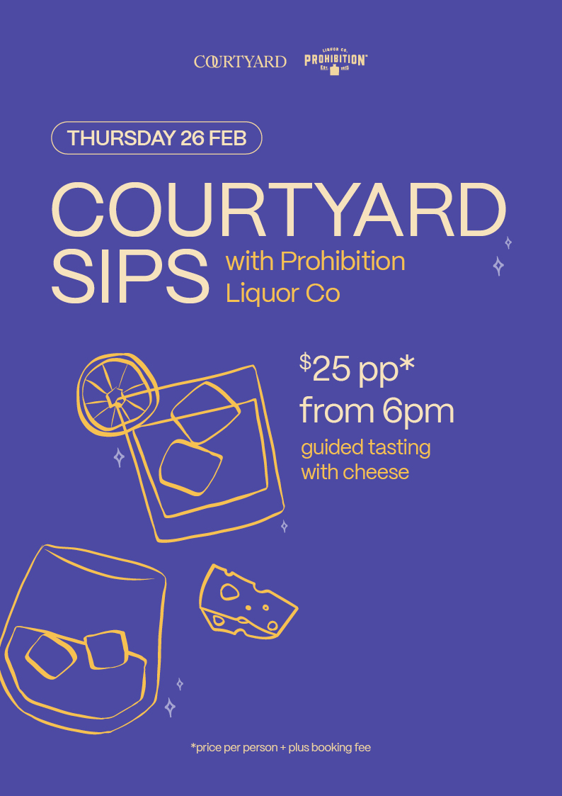 The perfect backdrop for a long lunch, afternoon drinks, or a relaxed dinner with friends. Each week features a fresh lineup of local talent—keep an eye on our socials to see who’s playing and make your weekend plans at the Courtyard.